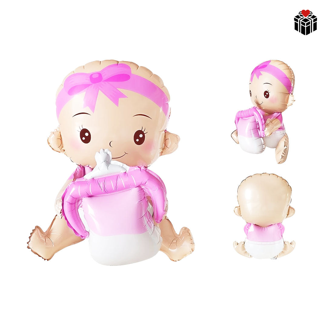Dieser süße Folienballon in Babyflaschen-Optik ist das perfekte Highlight zur Geburt oder zur BabyShower-Party. Wähle zwischen „Baby Boy“ oder „Baby Girl“ und sorge mit diesem Ballon für fröhliche Stimmung. Einfach mit Luft oder Helium befüllbar – ein toller Blickfang für jedes Babyfest!