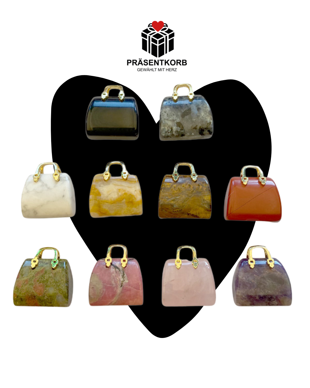 Unsere Edelstein-Handtaschen-Anhänger mit Puschel sind der perfekte Mix aus Stil und positiver Energie! Ob am Schlüsselbund, an der Tasche oder als kleines Geschenk – diese Mini-Bags aus echten Edelsteinen sind ein absoluter Hingucker. 👜💎