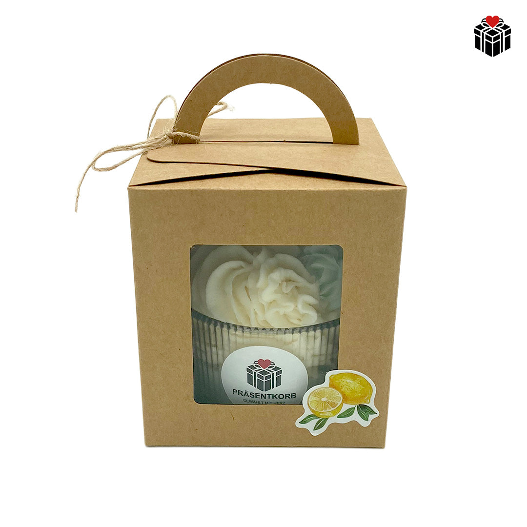 Mit cremiger Wachssahne, einem Macaron und einer Zitronenscheibe und einem kleinen Rösschen wird sie zum dekorativen Highlight in jedem Raum.