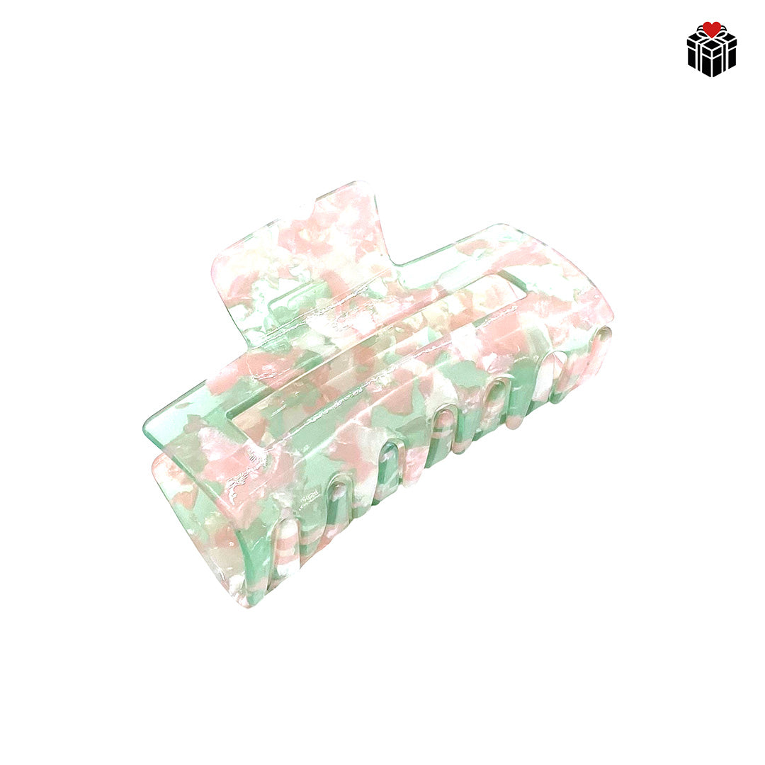 | Details: grüntransparenter Acrylharz mit rosaweißen Farbsprenkeln. Bietet sicheren Halt für alle Haartypen. Leicht und angenehm zu tragen. |