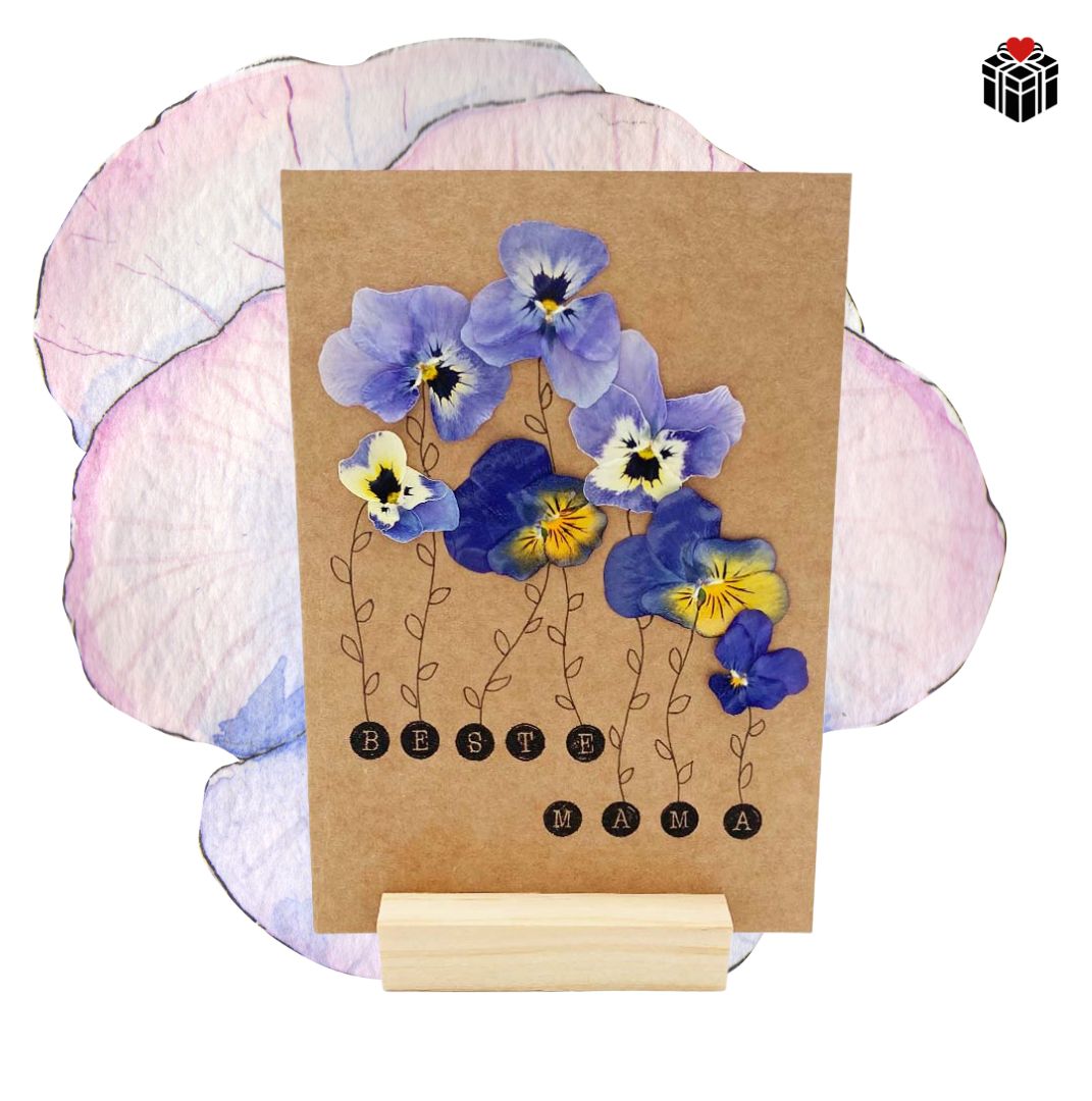 🌸 Verschenke diese blumig-süße handmade Klappkarte mit getrockeneten Stiefmütterchen Blüten in zarten Lilafarben. Ein besonderer Gruß an deine Mama!