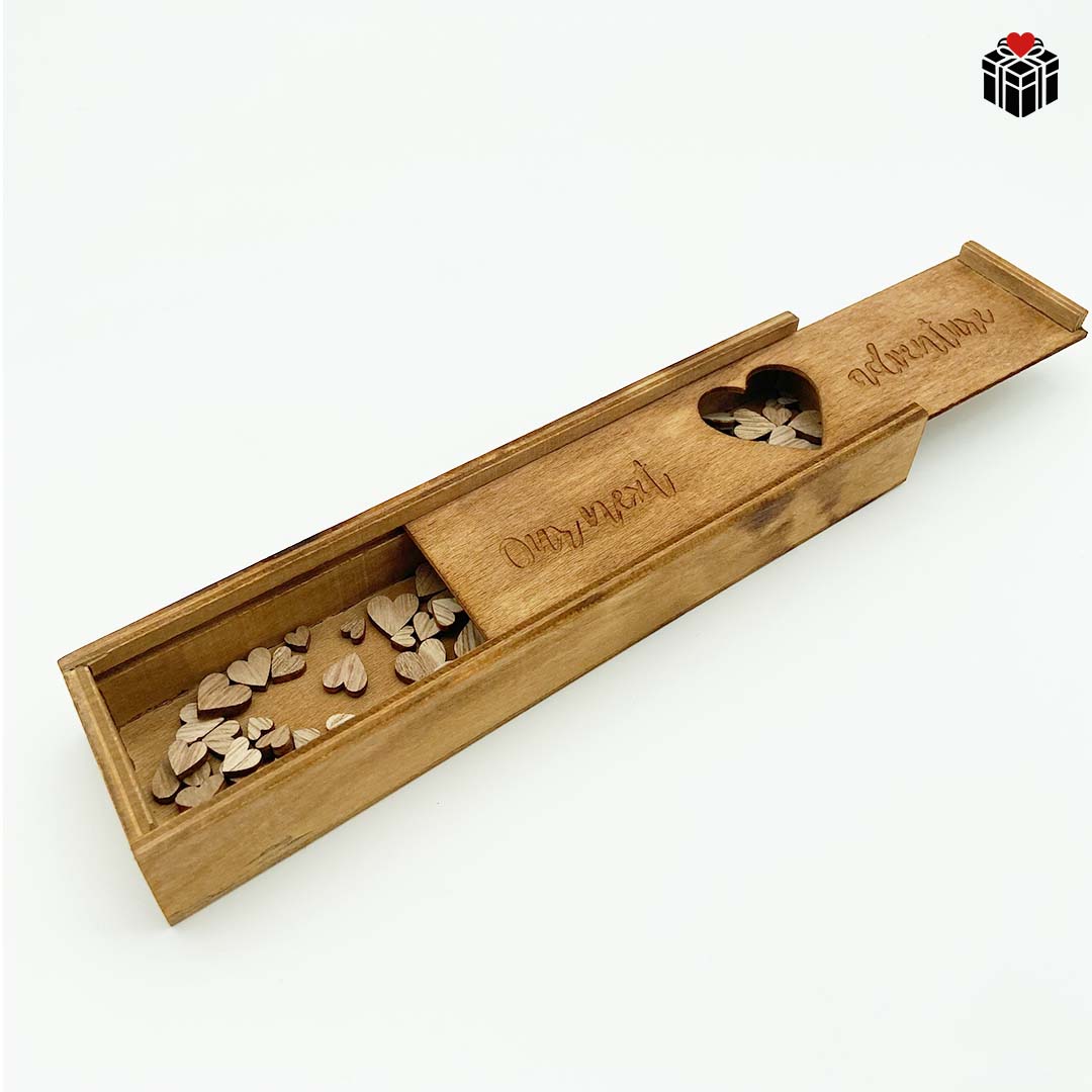 Im Inneren liegen kleine Holzherzchen als liebevolle Deko. Ideal für Partner, Familie oder Freunde – eine emotionale Überraschung mit Herz. ❤️