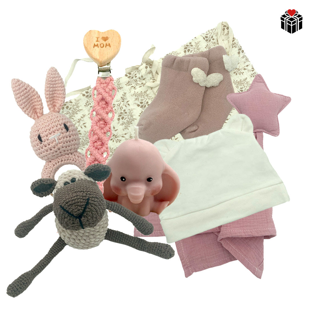 **Achtung! Dieses Produkt ist kein Spielzeug.** Einzelne Artikel enthalten Kleinteile, die eine Erstickungsgefahr für Babys und Kleinkinder darstellen können. Bitte nur unter Aufsicht eines Erwachsenen verwenden. **Schnullerkette:** Die Schnullerkette darf nicht verlängert oder an losen Teilen befestigt werden. Nur unter Aufsicht nutzen und bei ersten Anzeichen von Schäden nicht weiterverwenden. **Rassel & gehäkeltes Schäfchen:** Handgefertigte Produkte können leichte Abweichungen aufweisen. Bitte regelmäßig auf Beschädigungen prüfen und außerhalb der Reichweite von Babys aufbewahren, wenn sie nicht verwendet werden. **Babyelefant-Kerze:** Die Kerze ist ausschließlich zur Dekoration gedacht. Nur auf einer feuerfesten Unterlage und außerhalb der Reichweite von Kindern und Haustieren verwenden. Brennende Kerze nie unbeaufsichtigt lassen. **Bettaufbewahrungstasche:** Die Tasche darf nicht in der Nähe von Wärmequellen oder offenen Flammen platziert werden. Nur gemäß Anleitung befestigen. **Allgemeiner Hinweis:** Vor dem ersten Gebrauch alle Produkte auf Unversehrtheit prüfen. Verpackungsmaterialien entfernen und außerhalb der Reichweite von Kindern aufbewahren. Die Sicherheit Ihres Babys steht an erster Stelle! Bitte befolgen Sie diese Hinweise, um eine sichere Nutzung der Produkte zu gewährleisten. 💙👶