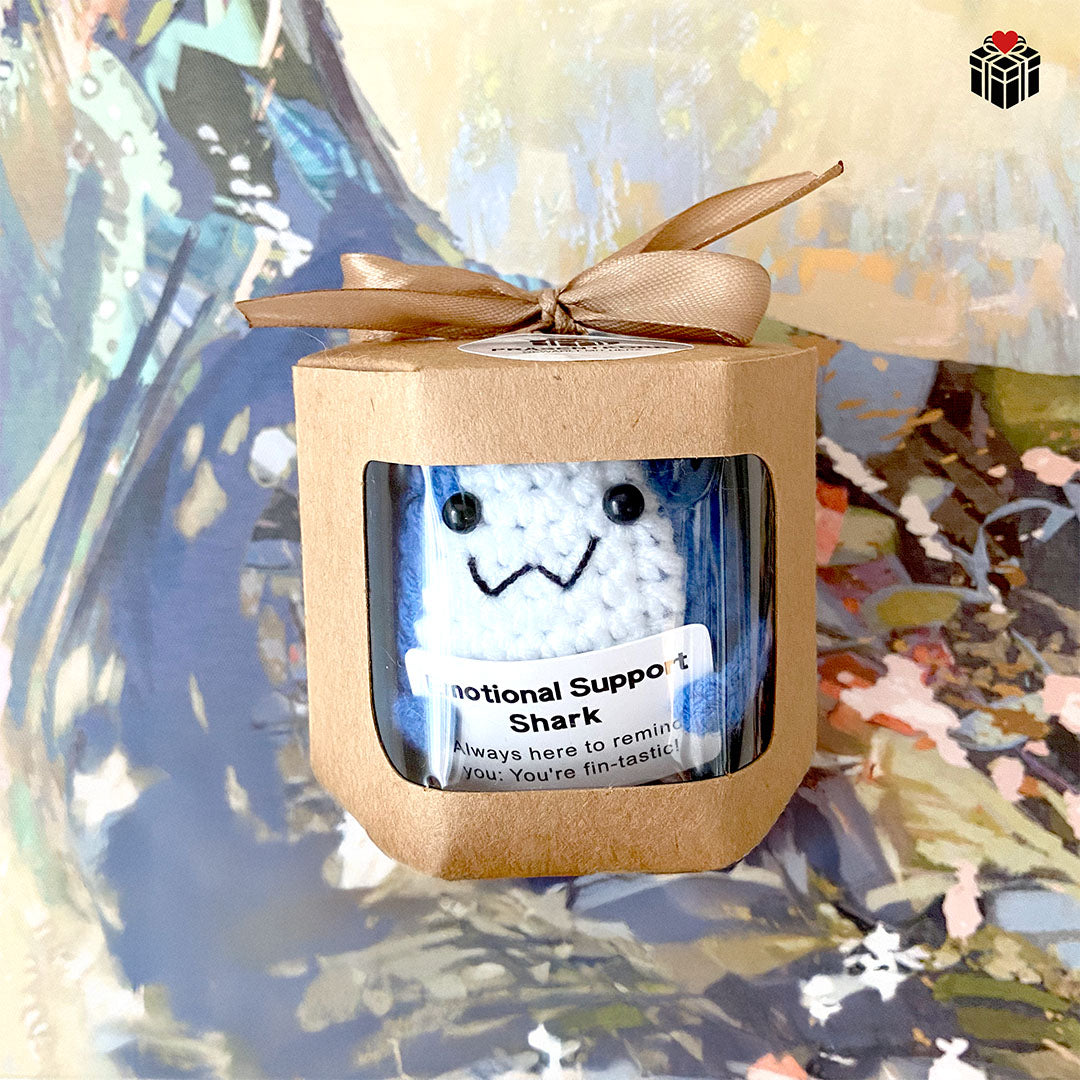 | Details: Gehäkelte Mutmacher aus Wolle. Erhältlich mit silbernem Karabinerhaken und verpackt in einem Kraftpapierkarton mit Schleife. |